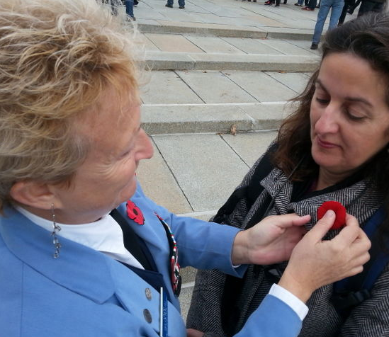Francine Proulx of Montreal approached a group of Legion members seeking a poppy.